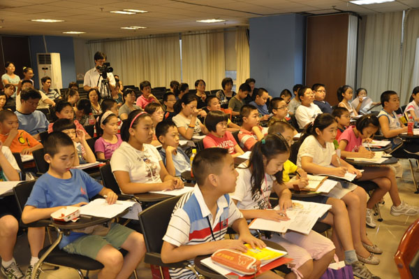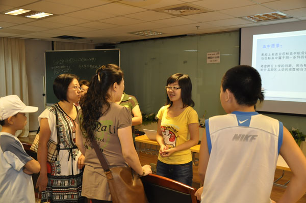 (5)主考老师会对考生进行表达能力的考试:给学生"家长、社区、成绩"三个成语,让孩子说一句话