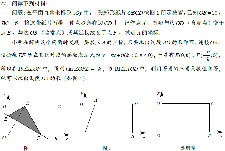 分析:22题一直是类似“阅读理解”的动手操作题,学生需要读懂题干提供的信息,对于题目提供的方法,考生一定要重视,只有读懂、理解了题目的方法才能顺利解决问题。