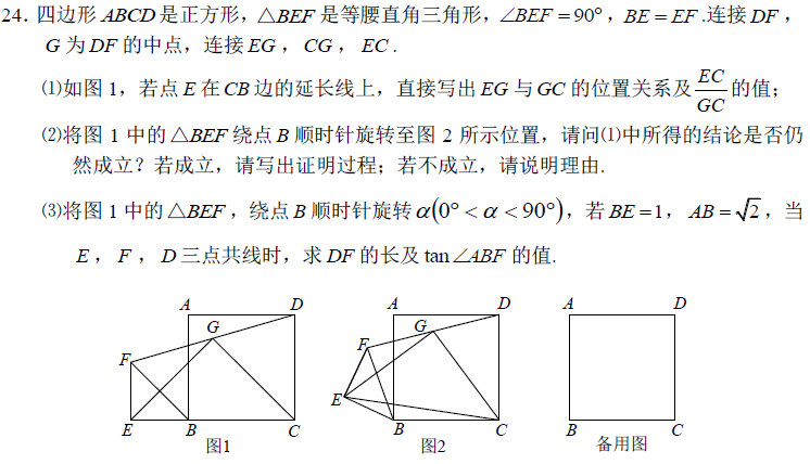 分析:这次的24题(几何综合)属于一种较老的题型,相信学生们应该已经接触过众多类似的题目。那这是什么样的题型呢———证明两个线段垂直且相等(往往与中点有关)的问题。问题的处理方法也是从提供的中点出发做切入——“倍长中线”,通过证明出现的大三角形为等腰直角三角形来证明两条线段垂直且相等。倍长中线出全等,这个全等带来的结论、信息一定要好好利用上,为接下来的证明全等提供条件。