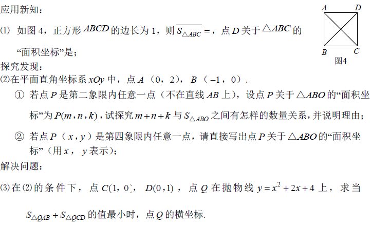 本题第三问:求两个三角形的面积看似和前面的内容联系不上,但仔细想想可以想到:前面的内容都是在验证三角形面积之间的关系,所以题目中的两个三角形面积完全可以转化成其他三角形的面积,即通过求△ABO的面积过程得到△QBO、△QOA、△QAB与△ABO的关系(△QCD处理方法类似)。(具体详解后续会更新)