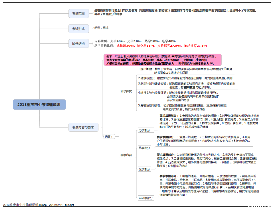 在每次中考前,都会由教育局负责中考的相关单位出台关于中考各个科目的考试说明,这份说明中会详细的把试卷结构,考察内容以及重点进行详细的说明。那么我们在复习的时候能够参照中考说明所注明必须掌握的内容进行复习,就能节省大量的时间,也使得复习更加具有目的性了。在这里附上本人自己整理的关于考试说明的一些理解: