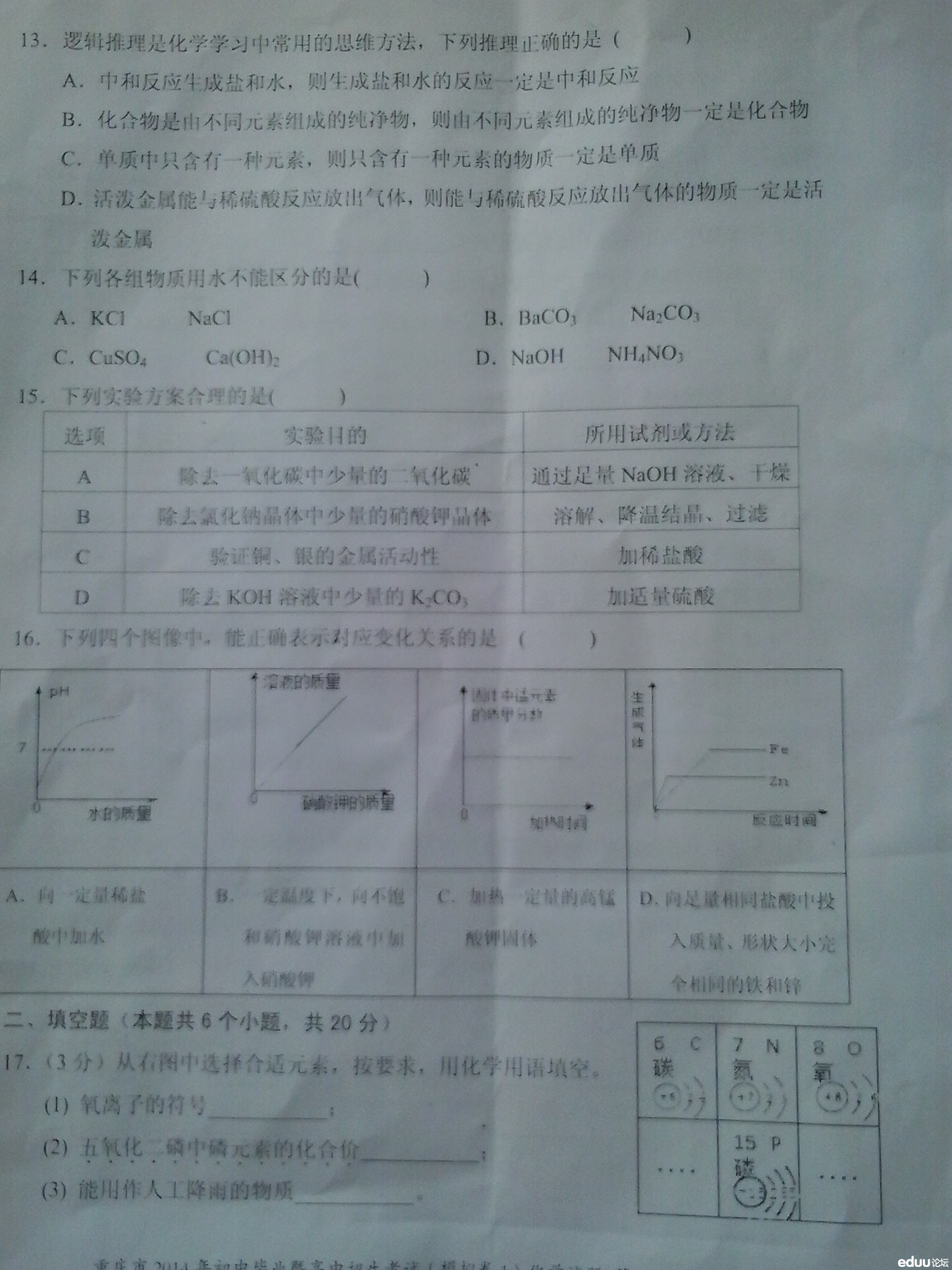 2014年重庆八中初中考一模化学试卷(4)