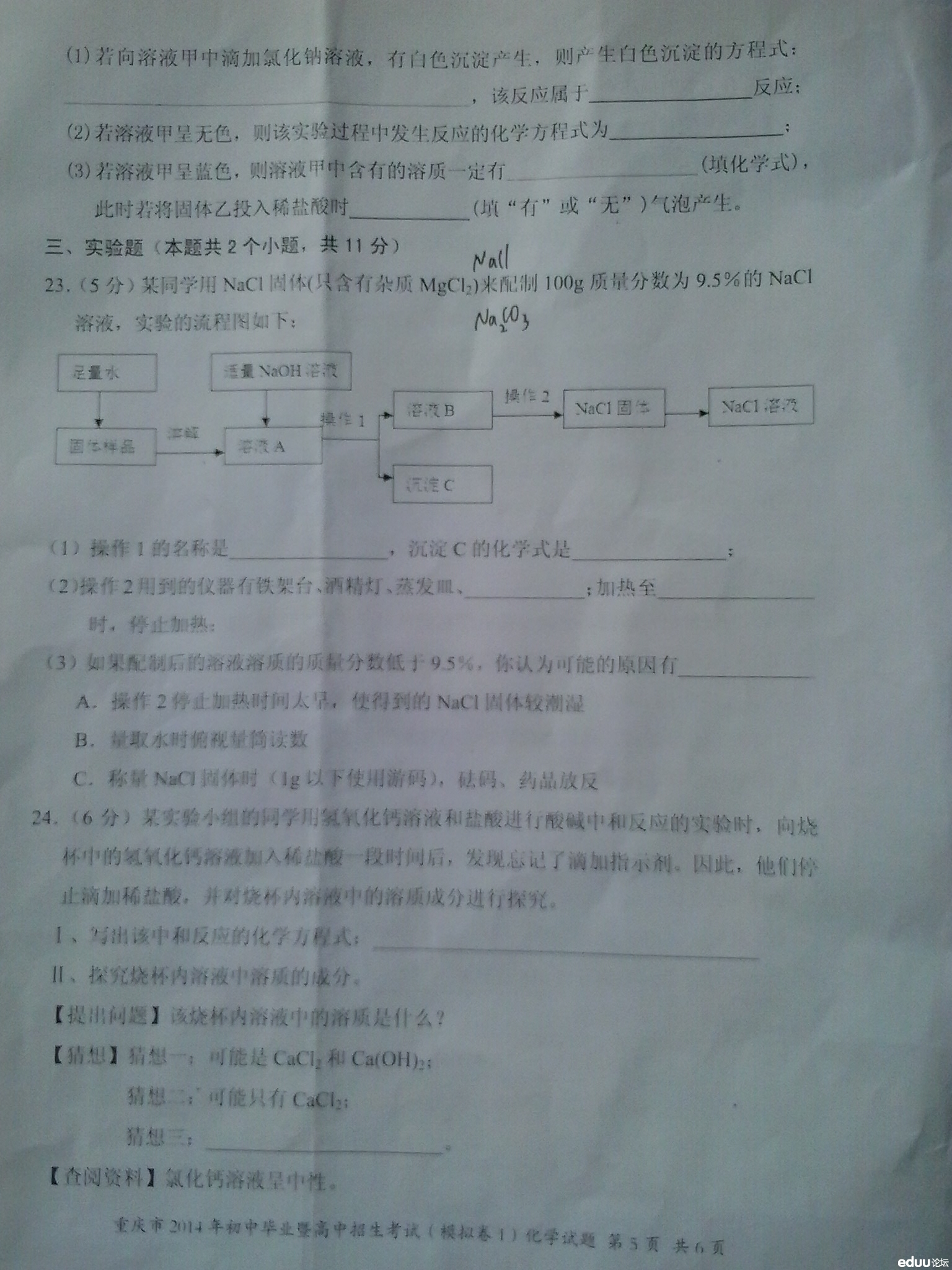 2014年重庆八中初中考一模化学试卷(7)