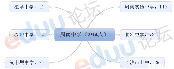 长沙今年的指标生计划为省示范性高中公办招生计划的40%,周南中学今年的指标生计划为294人,具体情况可参看下表: