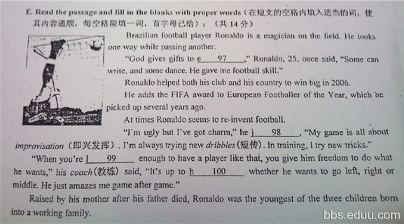 上海中考英语出题教研员经典试题之首字母填空