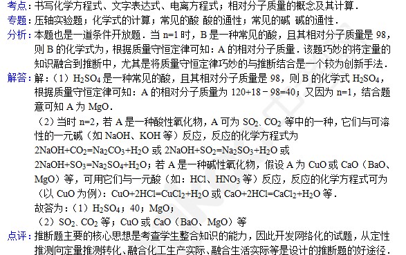 中考化学天天练试题及答案:压轴题专练(10月10日)(2)