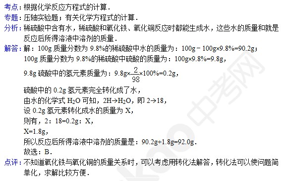 中考化学天天练试题及答案:压轴题专练(10月21日)(2)