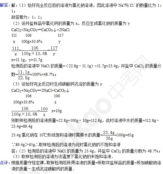 中考化学天天练试题及答案:计算题专练(11月2日)(2)