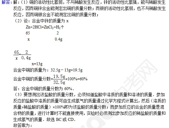 中考化学天天练试题及答案:计算题专练(11月5日)(2)