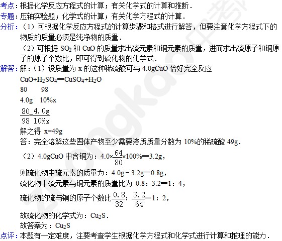 中考化学天天练试题及答案:计算题专练(10月30日)(2)