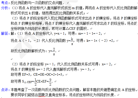 中考数学天天练试题及解析:反比例函数(12月3日)(2)