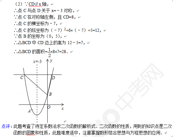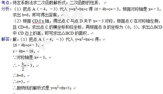 中考数学天天练试题及解析:二次函数(12月12日)(2)