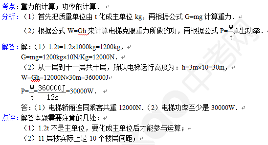 中考物理天天练试题及解析:重力的计算(1月1日)(2)