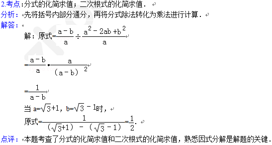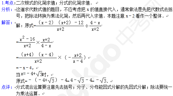 中考数学天天练试题及解析:二次根式的化简求值(1月6日)(2)