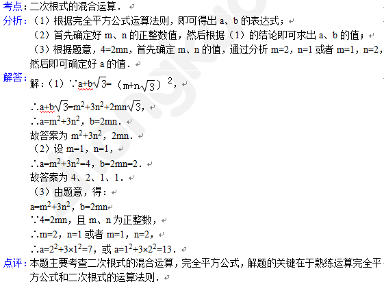中考数学天天练试题及解析:二次根式的混合运算(1月7日)(2)