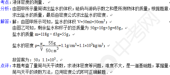 中考物理天天练试题及解析:液体密度的测量(1月10日)(2)