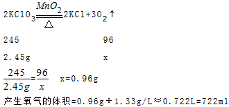 (4)计算分解2.45g氯酸钾产生氧气的质量及体积,判断所应选用的量筒.