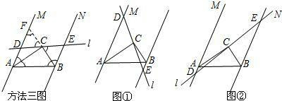 (3)画出直线l与直线MA不垂直且交点D、E在AB的异侧时的图形,分两种情况讨论: