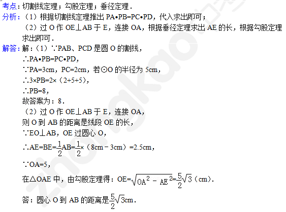 中考数学天天练试题及解析:切割线定理(2月5日)(2)