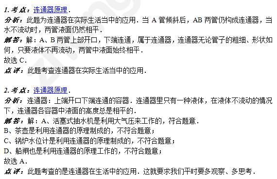 中考物理天天练试题及解析:连通器原理(2月10日)(2)