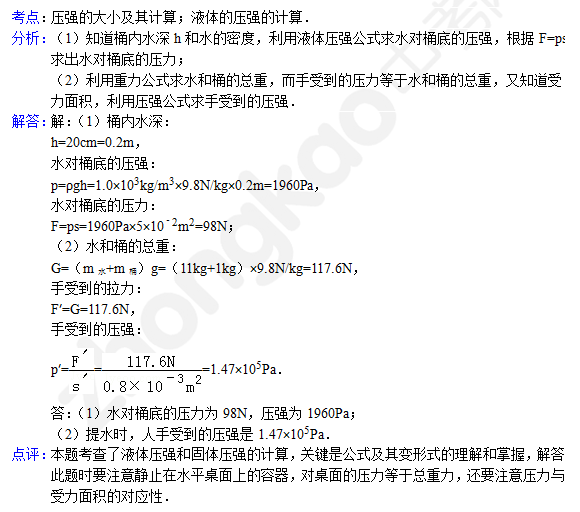 中考物理天天练试题及解析:液体压强的计算(2月13日)(2)