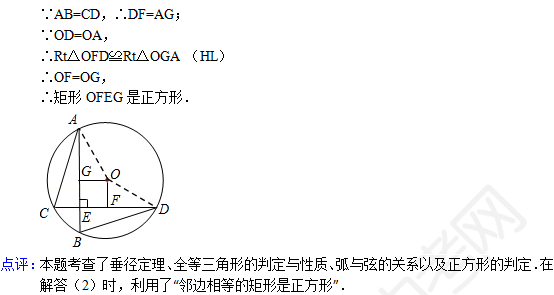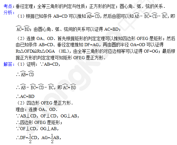 中考数学天天练试题及解析:弧、弦、圆心角(2月15日)(2)