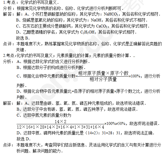 中考化学天天练试题及答案:化学式的书写(2月15日)(2)