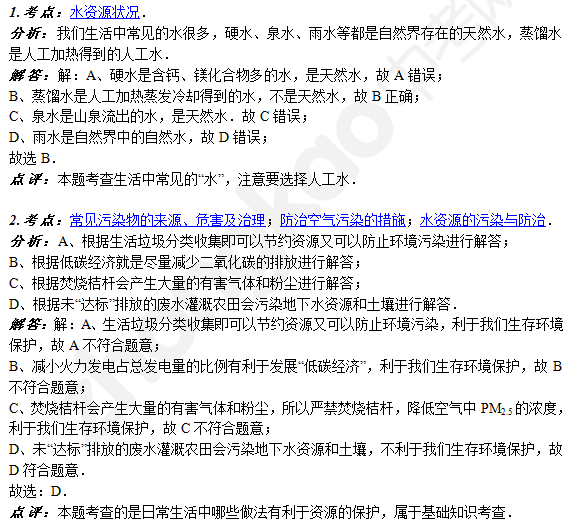 中考化学天天练试题及答案:爱护水资源(2月28日)(2)