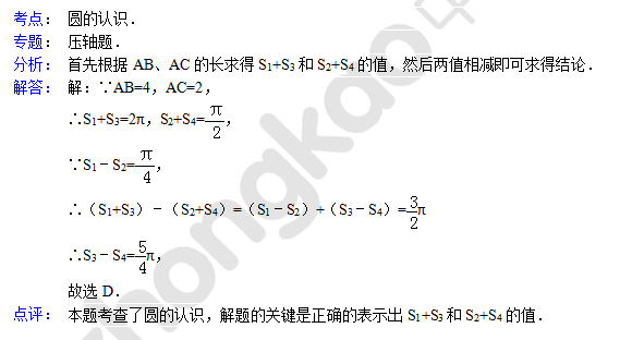 中考数学天天练试题及解析:圆的认识(3月1日)(2)