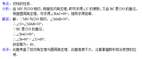 中考数学天天练试题及解析:切线的性质(3月10日)(2)