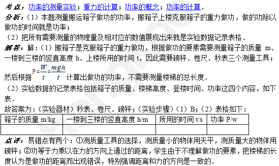 中考物理天天练试题及解析:功率的测量实验(3月18日)(2)