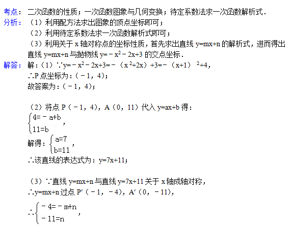 中考数学天天练试题及解析:一次函数图象(3月20日)(2)