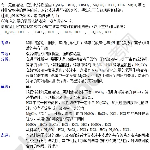 中考化学天天练试题及解析:物质的鉴别 推断(4月6日)(2)