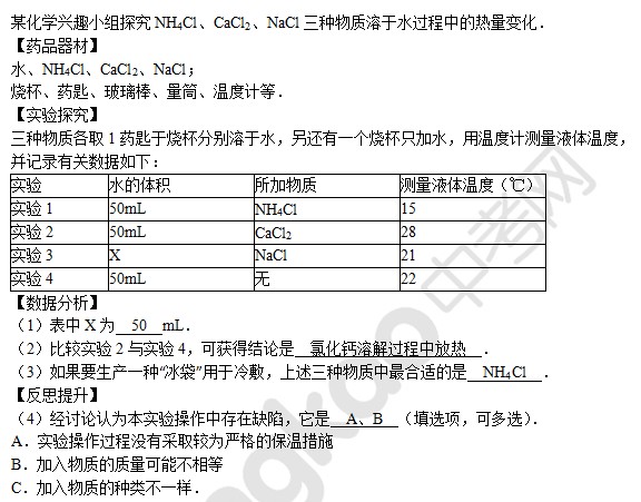 中考化学天天练试题及解析:溶解时的吸热或放热(4月8日)(2)