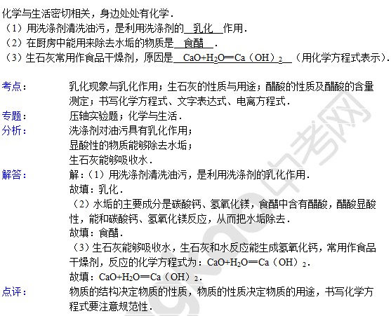 中考化学天天练试题及解析:乳化现象与乳化作用(4月10日)(2)