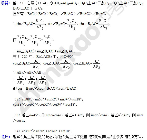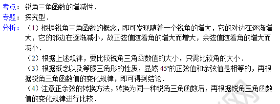 中考数学天天练试题及解析:锐角三角函数的增减性(4月12日)(2)