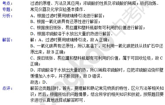 中考化学天天练试题及解析:过滤的原理 方法及其应用(4月14日)(2)