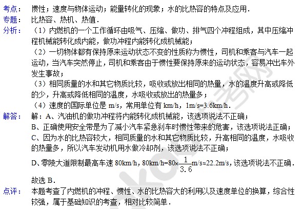 中考物理天天练试题及解析:比热容、热机、热值(5月2日)(2)