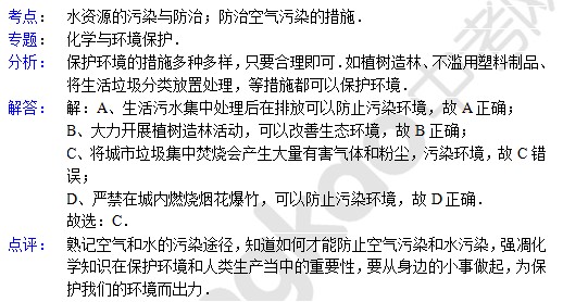 中考化学天天练试题及答案:防治空气污染的措施(5月11日)(2)