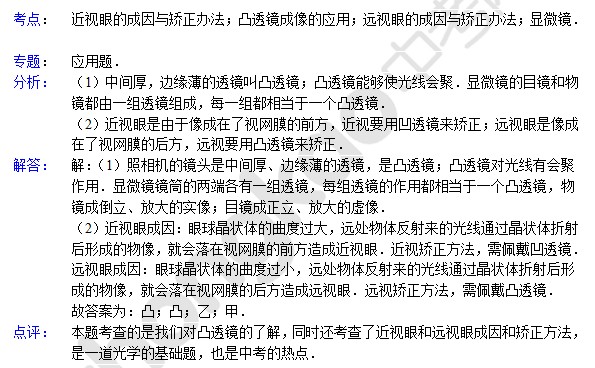 中考物理天天练试题及解析:凸透镜成像的应用(5月11日)(2)