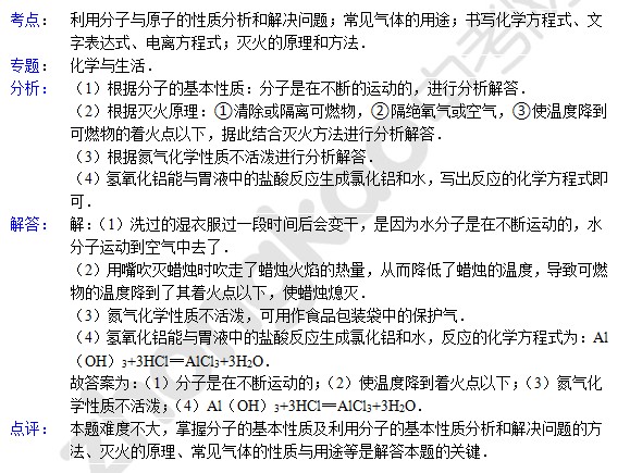 中考化学天天练试题及答案:分子与原子的性质(5月12日)(2)