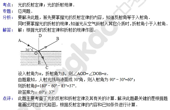 中考物理天天练试题及解析:光的反射定律(5月17日)(2)