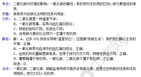 中考化学天天练试题及答案:碳单质与含碳化合物(5月18日)(2)