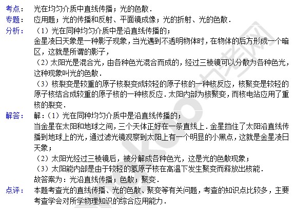 中考物理天天练试题及解析:光在均匀介质中直线传播(5月18日)(2)