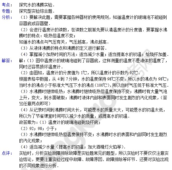 中考物理天天练试题及解析:探究水的沸腾实验(5月24日)(2)