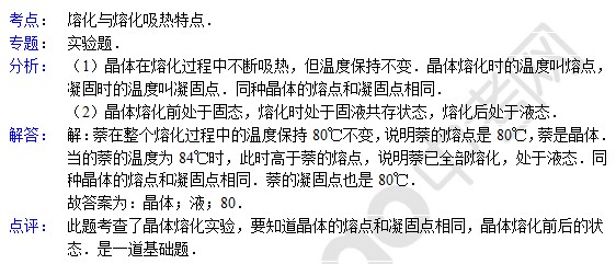 中考物理天天练试题及解析:熔化与熔化吸热特点(5月25日)(2)