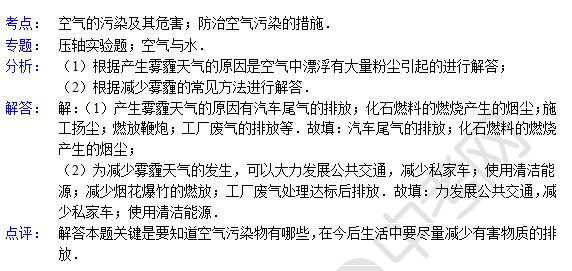 中考化学天天练试题及答案:空气的污染及其危害(5月29日)(2)