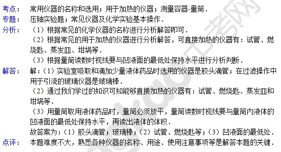 中考化学天天练试题及答案:常用仪器的名称和选用(5月30日)(2)