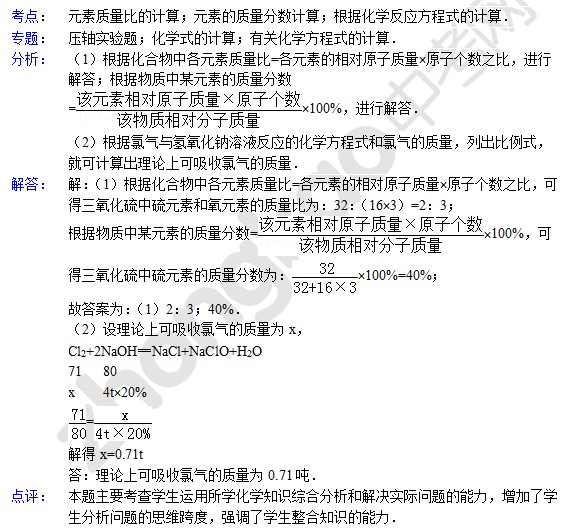 中考化学天天练试题及答案:元素质量比的计算(6月6日)(2)