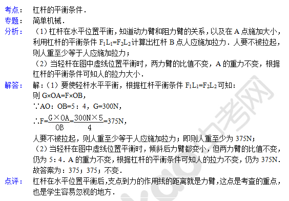 中考物理天天练试题及解析:杠杆的平衡条件(6月6日)(2)